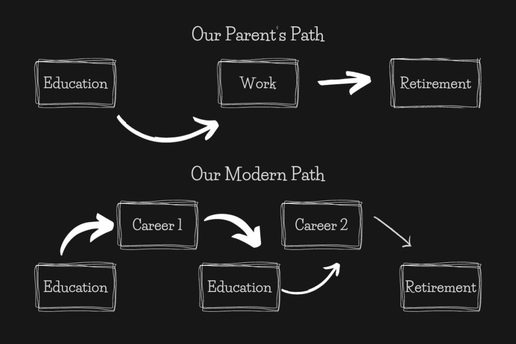 Gratton illustrates how society has moved away from the traditional 3-stage model of life, Education to Work to Retirement, into a more flexible life model that she calls a “multi-stage life.”