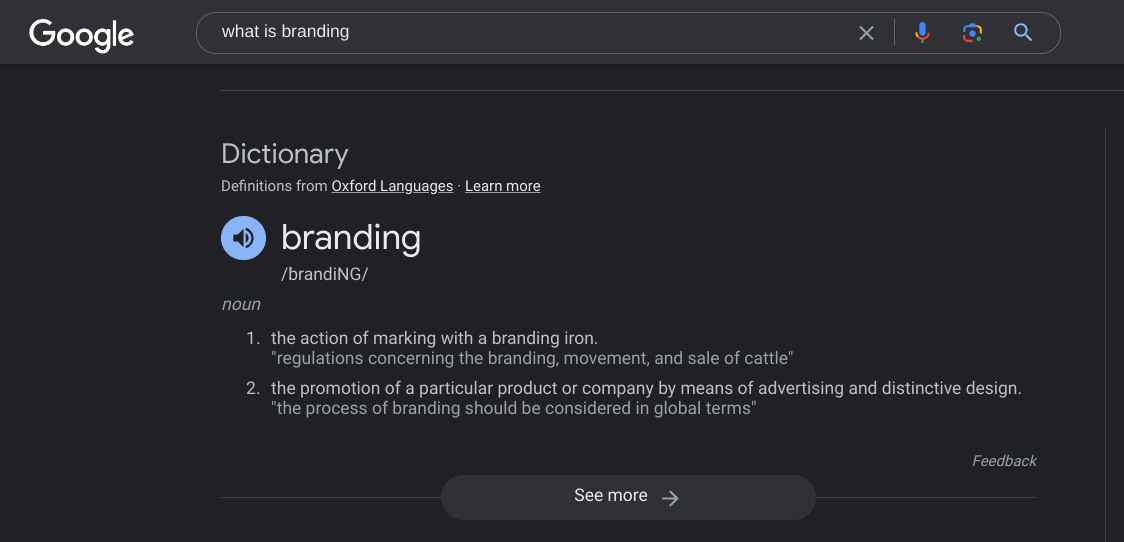 When you search “what is branding” in Google search, you get this: